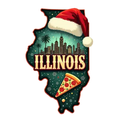 Illinois Christmas Cityscape Pizza DTF Transfer
