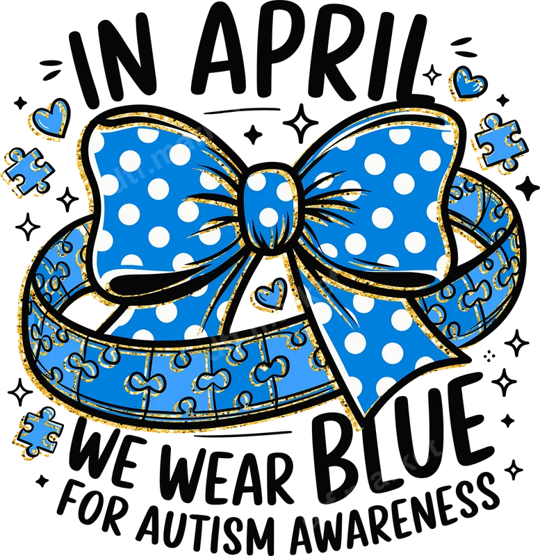 See allThis vibrant DTF transfer proudly displays "IN APRIL WE WEAR BLUE FOR AUTISM AWARENESS" with a charming blue polka dot bow. The bow features a dazzling gold glitter outline. Below, a unique ribbon crafted from interconnected puzzle pieces, also accented with gold glitter, beautifully symbolizes the autism community. This ready to press design is perfect for creating meaningful apparel. This powerful heat transfer is ideal for individuals and families supporting Autism Awareness Month in April. It's a thoughtful way for parents, educators, therapists, and advocates to show solidarity and start conversations. Create custom t-shirts for awareness walks, school events, fundraisers, or to wear daily as a proud statement. It makes a heartfelt gift for anyone dedicated to the autism community. Applying this iron on transfer is straightforward for crafters. It adheres perfectly to cotton, polyester, and blends. Use a heat press at 300-325°F for 15 seconds with medium pressure. A household iron can also be used. There's no weeding required, making your custom projects quick and easy. Crafted with professional-grade DTF film, this heat press ready design ensures exceptional vibrancy and durability. Colors are rich, lines crisp, and the gold glitter effect stands out. Our premium transfers are crack-resistant, peel-resistant, and soft to the touch once applied, providing a high-quality finish that lasts wash after wash on any apparel transfer.