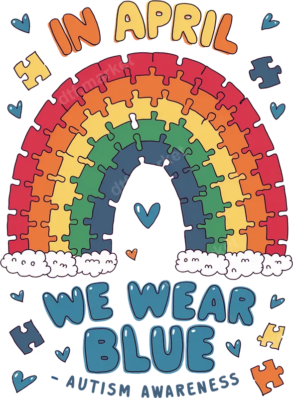 In April We Wear Blue Autism Awareness Puzzle Rainbow DTF Transfer