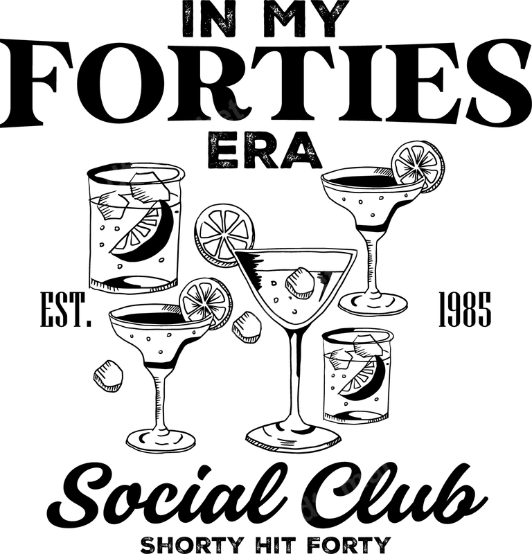 In My Forties Era Social Club DTF Transfer | 40th Birthday Drinking Design