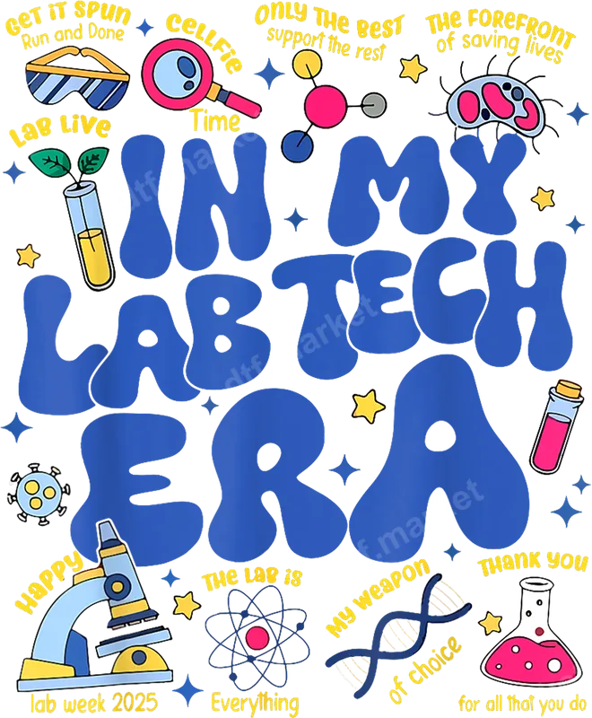See allThis vibrant "In My Lab Tech Era" DTF transfer captures the playful spirit of medical laboratory professionals. Featuring bold, retro-inspired blue lettering surrounded by whimsical science illustrations like microscopes, DNA strands, test tubes, and molecules, this design is a perfect celebration of the lab tech lifestyle. Each element adds charm and humor, making it a standout "ready to press" design for anyone in the field. Ideal for lab technicians, medical technologists, and allied health professionals, this creative heat press transfer makes a fantastic gift for Lab Week, graduations, birthdays, or just showing off your pride daily. It's a great way to personalize t-shirts, hoodies, or scrub tops, connecting with colleagues who appreciate the vital work done in the lab. This versatile design can also be an encouraging present for students entering medical lab sciences. Applying this professional-grade DTF transfer is effortless, whether you're using a heat press or a household iron. It adheres beautifully to a wide range of materials, including cotton, polyester, and their blends, making it suitable for almost any garment. Simply press at 300-325°F for 15 seconds with medium pressure. Enjoy a flawless finish with no weeding required, just peel and reveal your custom creation. Experience superior quality with our durable and flexible "iron on" design. Our DTF transfers are known for their vibrant, true-to-color results, excellent washability, and resistance to cracking or peeling. The special film ensures a soft feel on the fabric, providing a comfortable and long-lasting apparel transfer that looks professionally printed every time.