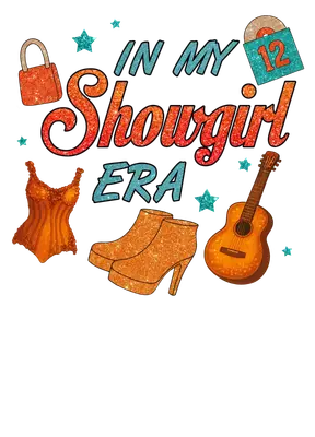 See allDive into your most glamorous phase with our "In My Showgirl Era" DTF transfer! This vibrant design captures the spirit of performance and self-expression, featuring shimmering orange and teal glitter text alongside iconic elements like a corset, platform boots, a retro record, a padlock, and a classic acoustic guitar, all accented with sparkling stars. It's a dazzling, ready to press statement piece for anyone ready to own the spotlight. This dazzling design is perfect for the fashion-forward individual, concert-goer, or anyone who embraces their inner diva. Ideal for small businesses creating custom apparel or crafters looking for a high-impact iron on transfer. It makes a fantastic gift for birthdays, bachelorette parties, girls' trips, or just celebrating personal style. Express your confidence and flair with this unique heat transfer design. Applying this heat press transfer is a breeze on a variety of materials including cotton, polyester, cotton-poly blends, and even nylon. For best results, use a heat press at 300-325°F for 15 seconds with medium pressure, or apply with a household iron. Forget tedious weeding; just peel and press! It's perfect for creating custom t-shirts, hoodies, sweatshirts, tote bags, pillow covers, and denim jackets. For lasting durability, wash garments inside out and tumble dry low. Experience professional quality with this ready to press transfer, boasting vibrant, full-color printing and exceptional fine detail. The result is a crack-resistant, soft-to-the-touch finish without the heavy feel often associated with vinyl. Each direct to film transfer is meticulously printed on premium DTF film with a strong adhesive backing, ensuring stunning results and long-lasting wear for all your apparel projects.