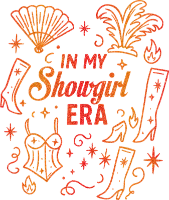 See allStep into your spotlight with this dazzling 'IN MY Showgirl ERA' DTF transfer. This vibrant design features bold, glittery orange and red gradient typography, surrounded by iconic stage glamor elements: a classic fan, elegant feather plume, stylish corsets, fierce high heels, and sparkling stars. It’s a celebration of confidence and embracing your inner diva. This eye-catching graphic is a ready to press design, perfect for making a bold fashion statement. Perfect for anyone ready to embrace their glamorous phase, this iron on transfer shines at bachelorette parties, girls' night out, or themed birthdays. Aspiring performers, theater enthusiasts, dance groups, or friends creating matching outfits will adore this empowering heat transfer design. It's also ideal for small business owners and Etsy t-shirt sellers offering trendy, personality-driven apparel. Applying this stunning heat press transfer is incredibly easy. It adheres beautifully to cotton, polyester, cotton-poly blends, and even nylon fabrics. Use a heat press (300-325°F, 15 seconds, medium pressure) or a household iron—no weeding required, just peel and press! Create custom t-shirts, cozy hoodies, stylish tote bags, or unique denim jackets. For lasting vibrancy, wash garments inside out and tumble dry low. Experience superior quality with this ready to press transfer. It boasts vibrant, full-color printing that captures every fine detail, ensuring your design truly pops. Our DTF transfers are crack-resistant and soft to the touch, avoiding the heavy, stiff feel of traditional vinyl. Each direct to film transfer is printed on premium DTF film with a strong adhesive backing, guaranteeing professional-grade results that stand up to wear and washing, every time.