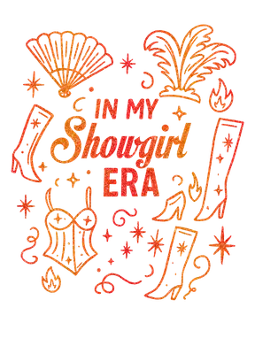 See allThis vibrant "In My Showgirl Era" DTF transfer captures the essence of glamour and celebration. Featuring sparkling orange and red glitter-effect text, the design is adorned with iconic showgirl elements like feathered boas, elegant hand fans, high-heeled boots, and corsets. It's a dazzling statement piece, perfectly ready to press onto your favorite garments to declare your current confident, flamboyant phase. This design is an ideal iron on transfer for anyone embracing their inner diva. Perfect for bachelorette parties, birthday celebrations, girls' trips, or simply to express your bold personality. Crafters and small apparel businesses will find this heat transfer design a fun and expressive choice for custom gifts or merchandise. Celebrate confidence, theatrical flair, and living your best life with this eye-catching piece. Applying this heat press transfer is simple for home or professional use. It adheres perfectly to cotton, polyester, blends, and nylon. Just heat press at 300-325°F for 15 seconds, or use a firm iron. No weeding needed – peel and press! Ideal for custom t-shirts, hoodies, tote bags, and denim jackets. Wash inside out, tumble dry low for lasting wear. This ready to press transfer ensures vibrant, full-color printing with stunning glitter effects and fine detail. It's crack-resistant and soft, unlike heavy vinyl. Every direct to film transfer is printed on premium DTF film with a strong adhesive backing, guaranteeing professional-grade results and standout apparel every time.