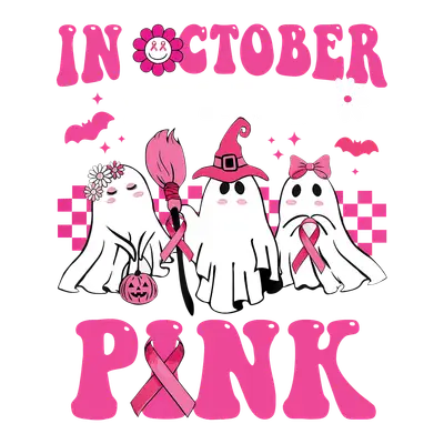 "In October We Wear Pink" Cute Ghosts DTF Transfer | Breast Cancer Awareness