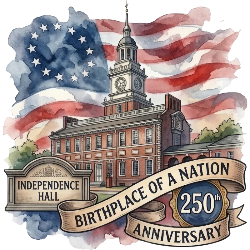 Independence Hall 250th Anniversary Patriotic USA DTF Transfer