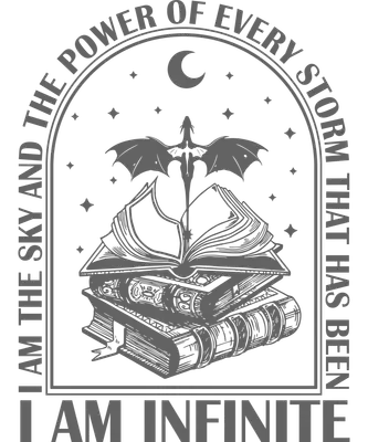 See allDiscover this intricate DTF transfer featuring a majestic dragon soaring above a stack of antique books, an open tome revealing its pages. A luminous crescent moon and twinkling stars frame the scene within an elegant arched motif. Emblazoned with the powerful message "I AM THE SKY AND THE POWER OF EVERY STORM THAT HAS BEEN" and "I AM INFINITE," this ready to press design conveys profound self-belief, resilience, and literary enchantment. It’s a mystical blend of fantasy and wisdom, ideal for those who draw strength from stories and the cosmos. This unique iron on transfer is perfect for fantasy enthusiasts, avid readers, dark academia aesthetic followers, and anyone seeking a symbol of personal empowerment. It makes an exceptional gift for students, writers, gamers, or dreamers. Use this heat transfer design to create personalized apparel for book club events, fantasy conventions, or as an everyday statement piece reflecting inner power and infinite potential. Our high-quality heat press transfer applies seamlessly to various fabrics including cotton, polyester, and blends, even nylon. Achieve professional results with a heat press set at 300-325°F for 15 seconds, medium pressure, or easily use a household iron. Forget weeding—simply peel and press! Transform custom t-shirts, cozy hoodies, sturdy tote bags, or stylish denim jackets. For lasting wear, wash garments inside out and and tumble dry on low heat. Experience superior quality with this ready to press transfer, showcasing vibrant, full-color printing and incredibly fine detail. The result is a crack-resistant, soft-to-the-touch finish that lacks the heavy, bulky feel of traditional vinyl. Each direct to film transfer is produced on premium DTF film with a robust adhesive backing, ensuring professional-grade applications and enduring designs for all your apparel and accessory projects.