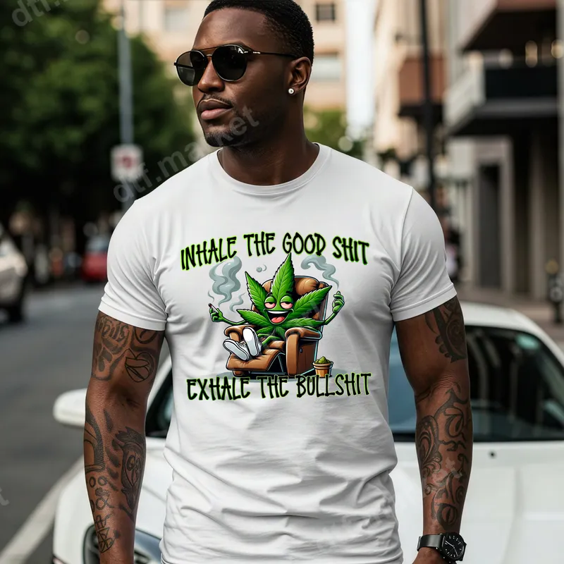 Inhale Good Shit Exhale Bullshit DTF Transfer | Funny Cannabis Leaf Design
