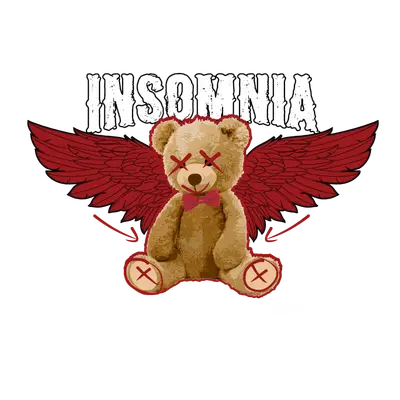 Insomnia Winged Teddy Bear DTF Transfer | Edgy Streetwear Design