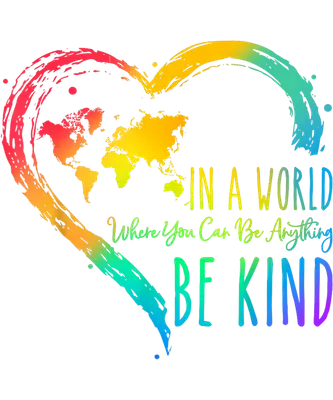Inspirational Be Kind World Map Rainbow Heart DTF Transfer