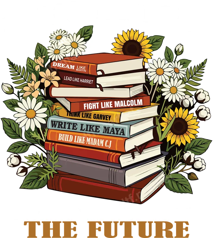See allThis vibrant DTF transfer beautifully celebrates a legacy of leadership and knowledge, featuring a prominent stack of books adorned with powerful, inspirational calls to action. Phrases like "DREAM LIKE MARTIN," "LEAD LIKE HARRIET," "FIGHT LIKE MALCOLM," and "WRITE LIKE MAYA" are elegantly displayed, surrounded by symbolic sunflowers, daisies, and cotton blossoms. The phrase "THE FUTURE" anchors this ready to press design, encapsulating resilience and forward-thinking inspiration. Ideal for educators, students, activists, and anyone passionate about inspiring greatness and honoring impactful figures, this heat press transfer is perfect for educational events, community gatherings, or as a year-round statement piece. It makes a thoughtful gift for history buffs, teachers, or leaders looking to motivate. Showcase pride and ignite conversations with this meaningful apparel transfer. Our premium direct to film transfer is incredibly versatile and easy to apply. It works seamlessly on a wide range of fabric types including cotton, polyester, and various blends, making it suitable for almost any garment. Simply use a heat press at 300-325°F for 15 seconds with medium pressure. Forget the hassle of weeding; this iron on transfer is completely ready to go straight from the film to your chosen item. Experience professional-grade results with our high-quality DTF transfers. Each heat press design boasts vibrant, true-to-color inks that resist cracking and peeling, ensuring your design looks fresh and lasts wash after wash. The soft-touch feel integrates beautifully with the fabric, providing a comfortable wear. Trust dtf.market for durable, stunning ready to press transfers that bring your vision to life.