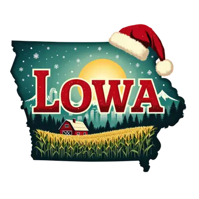 Iowa Christmas DTF Transfer | Santa Hat Winter Farm City Scene