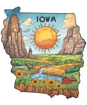 Iowa State Outline DTF Transfer | Scenic Midwest Landscape & Sunflowers