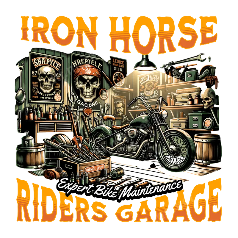 Iron Horse Riders Garage Motorcycle DTF Transfer Design