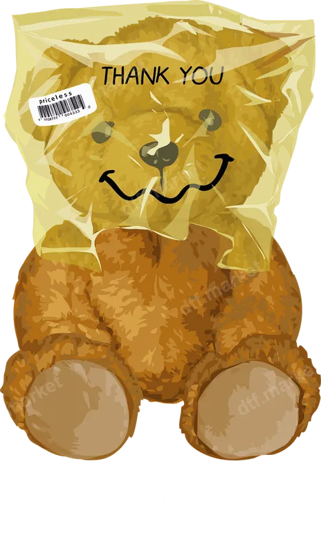 See allThis unique DTF transfer features a charming yet edgy teddy bear, playfully depicted with a drawn-on happy face peeking through a transparent plastic bag. The bag is emblazoned with “THANK YOU” and a “priceless” barcode label, adding an ironic touch to this design. Below the bear, the phrase “put on Happy face” completes the clever commentary. This ready to press design combines a cute motif with a modern, slightly sarcastic sensibility, perfect for making a statement. This versatile design is ideal for streetwear enthusiasts, those who appreciate ironic humor, and anyone looking to add a unique, conversation-starting piece to their wardrobe. It makes an excellent iron on transfer for personalizing gifts for friends, family, or even yourself. Perfect for casual outings, concerts, or just expressing your individual style, this t-shirt transfer adds personality to any garment. Our premium heat press transfer is incredibly easy to apply to a wide range of fabrics, including cotton, polyester, and various blends. For best results, use a heat press at 300-325°F for 15 seconds with medium pressure. These direct to film transfers also work effectively with a household iron, ensuring accessibility for all users. Enjoy the convenience of no weeding or layering required – simply press and peel! Experience superior quality with this vibrant apparel transfer. Our DTF transfers are known for their exceptional color vibrancy, crisp details, and remarkable durability. They are designed to be crack-resistant and soft to the touch, ensuring your custom garments look and feel great wash after wash. Crafted from professional-grade DTF film with strong adhesive, you can trust this transfer to provide a long-lasting, high-quality finish.