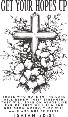 Isaiah 40:31 "Get Your Hopes Up" Floral Cross DTF Transfer