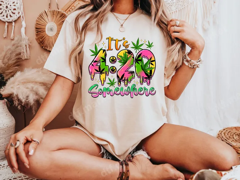 See allDive into a splash of color with our 'It's 4:20 Somewhere' DTF transfer. This vibrant design features bold, dripping text in a cool tie-dye gradient of pink, green, and yellow, adorned with playful cannabis leaves and sparkling accents. It captures a relaxed, carefree attitude with a fun, eye-catching aesthetic. This premium DTF transfer is ready to press, allowing you to effortlessly customize your favorite apparel with a unique statement piece. Perfect for those who appreciate cannabis culture, this heat transfer is ideal for 4/20 celebrations, casual gatherings, music festivals, or just everyday wear. It makes a fantastic gift for friends who enjoy a laid-back lifestyle, pot enthusiasts, or anyone with a great sense of humor. Show off your chill vibe at parties, concerts, or while lounging with this standout iron on design. Applying this ready to press transfer is a breeze, whether you're a seasoned pro or new to heat pressing. It works beautifully on a wide range of fabrics including cotton, polyester, and various blends. For best results, use a heat press at 300-325°F for 15 seconds with medium, even pressure. Unlike traditional vinyl transfers, there's no tedious weeding required, making your customization process quick and simple. Experience professional quality with every application. Our DTF transfers boast incredibly vibrant colors that pop, superior crack-resistant durability, and a soft-to-the-touch feel that integrates seamlessly with your garment. Each heat press design is printed on professional-grade DTF film with a strong, long-lasting adhesive, ensuring your apparel transfer will look fantastic wash after wash.