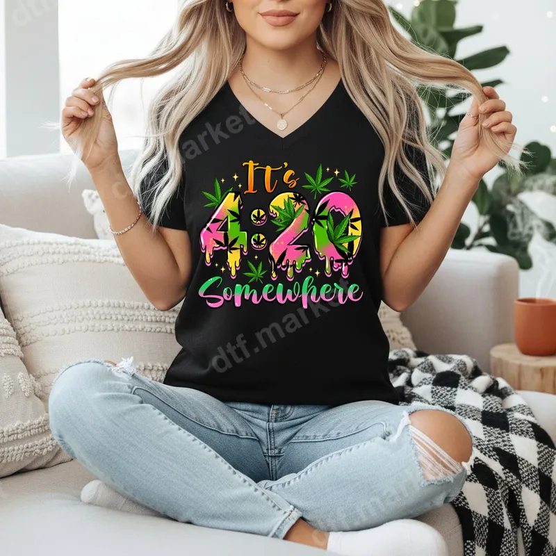 It's 4:20 Somewhere DTF Transfer | Colorful Weed Leaf Design