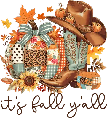 It's Fall Y'all DTF Transfer: Western Cowboy Boots & Patchwork Pumpkins