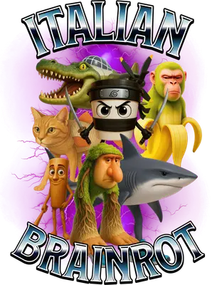 Dive into the delightfully chaotic world of internet humor with our 'Italian Brainrot' DTF transfer. This vibrant, full-color design features an eclectic mix of surreal characters: a ninja coffee cup, a banana-peel monkey, an alligator-plane, a fish-scaled cat, a pasta character, a grumpy troll, and a shark, all set against a striking purple lightning background. It's a true visual representation of Gen Z 'brainrot' culture, offering a ready to press design that's as unique as it is hilarious. This iron on transfer is perfect for meme enthusiasts, Gen Z fashionistas, and anyone who loves to make a statement with their apparel. Ideal for personalizing casual everyday wear, creating standout gifts for friends, or adding a touch of absurdist humor to your wardrobe. Small t-shirt businesses and crafters looking for an edgy, conversation-starting heat transfer design will find this an excellent addition to their inventory, attracting a younger, internet-savvy clientele. Applying this heat press transfer is incredibly easy. It adheres flawlessly to cotton, polyester, cotton-poly blends, and even nylon fabrics. Simply use a heat press at 300-325°F for 15 seconds with medium pressure, or apply with a household iron. There's no tedious weeding required – just peel and press! It's perfect for custom t-shirts, hoodies, sweatshirts, tote bags, pillow covers, and denim jackets. For best results and lasting durability, wash garments inside out and tumble dry on low heat. Experience premium quality with this ready to press transfer. It boasts vibrant, crisp colors and incredibly fine detail, ensuring your design truly pops. The transfer is crack-resistant and feels soft to the touch, avoiding the heavy, stiff feel of traditional vinyl. Each direct to film transfer is printed on high-grade DTF film with a robust adhesive backing, guaranteeing professional, long-lasting results every single time.