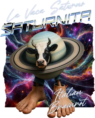 Italian Brainrot Saturn Cow DTF Transfer with Human Feet & Cosmic Background