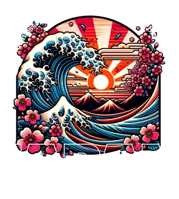 Japanese Great Wave & Cherry Blossom DTF Transfer with JAPAN Text