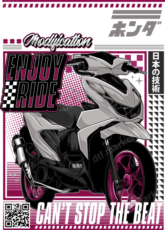 Japanese Scooter Modification DTF Transfer | Enjoy Ride Honda Beat Design