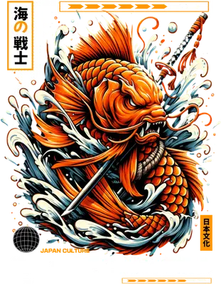 Japanese Warrior Koi Fish DTF Transfer | Katana Dragon Apparel Design