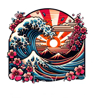 Japanese Wave Cherry Blossom Sun DTF Transfer