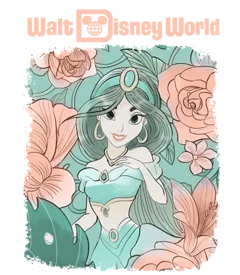 Jasmine Princess Walt Disney World Floral DTF Transfer | Retro Cartoon Heat Press Design
