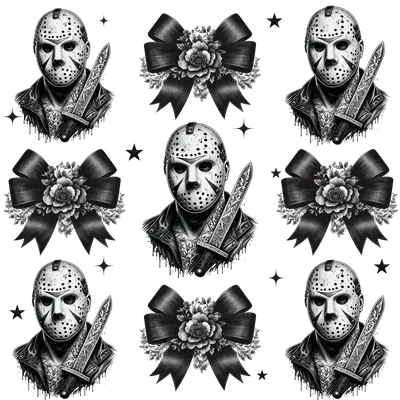 Jason Hockey Mask & Floral Bow DTF Transfer | Gothic Horror Apparel
