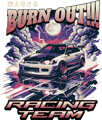 JDM Racing Car Burn Out!!! DTF Transfer - Fast Sports Car Heat Press Design