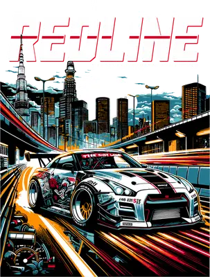 JDM Street Racing Car DTF Transfer | Redline City Skyline Heat Press Design