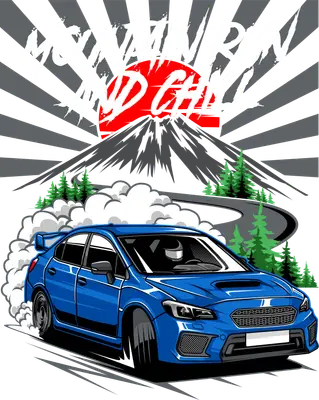 JDM Style Blue Sports Car Drift DTF Transfer | Mountain Run & Chill
