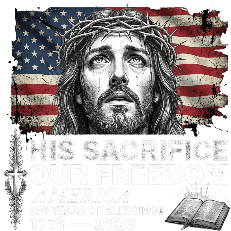 Jesus American Flag DTF Transfer - His Sacrifice Our Freedom 1776-2026
