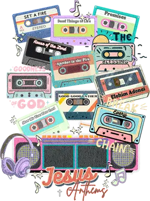 Jesus Anthems Retro Christian Worship Music Cassette DTF Transfer