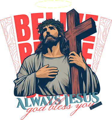 Jesus Believe Trust in God DTF Transfer | Christian Cross Design