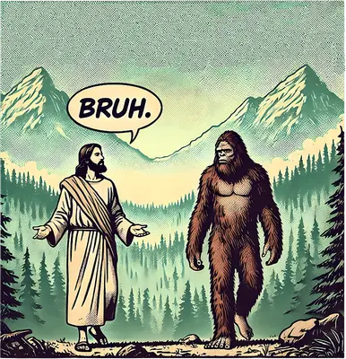 Jesus & Bigfoot "Bruh" Meme DTF Transfer - Ready to Press