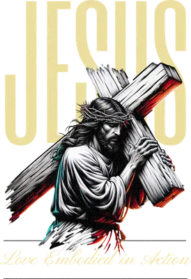 This deeply moving DTF transfer features a detailed illustration of Jesus carrying the cross, crowned with thorns, against a subtle 'JESUS' backdrop. The powerful message 'Love Embodied in Action' anchors the design, creating a profound spiritual statement. This ready to press design beautifully captures devotion and sacrifice, making it a perfect emblem for expressing faith through apparel. This inspirational design is perfect for anyone wishing to express their Christian faith, from individuals seeking personal devotion wear to church youth groups, ministries, and spiritual communities. It serves as a meaningful gift for Easter, Lent, confirmations, or baptisms. Small t-shirt businesses and crafters will find this iron on transfer ideal for creating custom apparel for their faith-based clientele, offering a powerful heat transfer design for spiritual gatherings or everyday wear. Applying this heat press transfer is simple and efficient. It works flawlessly on cotton, polyester, cotton-poly blends, and even nylon. For best results, use a heat press at 300-325°F for 15 seconds with medium pressure, or apply with a household iron. There's no weeding required—just peel and press! Create stunning custom t-shirts, hoodies, sweatshirts, tote bags, and even pillow covers. For lasting durability, wash garments inside out and tumble dry low. Our ready to press transfer boasts vibrant, full-color printing with exceptional fine detail, ensuring your design truly stands out. It's crack-resistant and incredibly soft to the touch, providing a comfortable feel without the heavy vinyl stiffness. Each direct to film transfer is printed on premium DTF film with a strong adhesive backing, guaranteeing professional, long-lasting results for all your custom apparel projects.