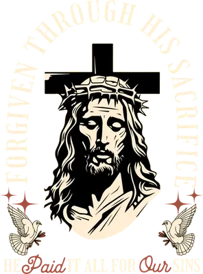 Jesus Cross Crown of Thorns He Paid It All DTF Transfer