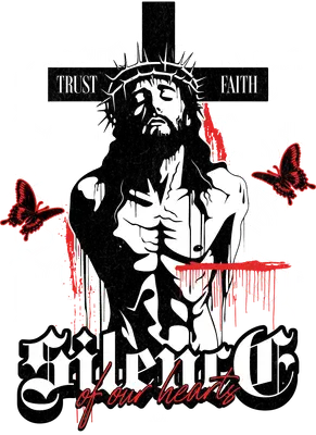 Embrace a powerful expression of faith with this striking Jesus Crown of Thorns Cross DTF transfer. Featuring a stylized, gritty black and white depiction of Jesus wearing a crown of thorns, set against a bold cross with the words "TRUST" and "FAITH," this design exudes modern spirituality. Vivid red blood drips and two vibrant red butterflies add a dramatic touch, complemented by the impactful phrase "Silence of our hearts." This unique design is a ready to press statement piece, perfect for those seeking to blend their faith with an edgy, contemporary aesthetic. This faith-inspired iron on transfer is perfect for Christian youth groups, modern believers, or anyone looking to infuse their wardrobe with a spiritual message. Small t-shirt businesses and crafters will find this heat transfer design an excellent addition to their inventory for creating custom apparel. It makes a thoughtful gift for friends and family during religious holidays like Easter, for baptisms, confirmations, or simply as an everyday reminder of spiritual commitment. Applying this heat press transfer is simple and efficient. It adheres beautifully to a wide range of fabrics, including cotton, polyester, cotton-poly blends, and even nylon. Achieve professional results using a heat press at 300-325°F for 15 seconds with medium pressure, or apply with a household iron. There's no tedious weeding required—just peel and press! Perfect for custom t-shirts, hoodies, sweatshirts, tote bags, denim jackets, and pillow covers. For lasting durability, wash garments inside out and tumble dry on low heat. Our ready to press transfer ensures vibrant, full-color printing with exceptional detail that truly brings this design to life. It’s crack-resistant and soft to the touch, without the heavy feel often associated with vinyl transfers. Each direct to film transfer is printed on premium DTF film, featuring a strong adhesive backing for consistent, professional application every single time, making your custom projects stand out.