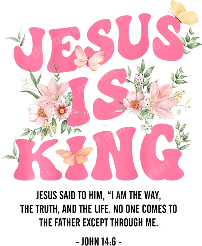 Jesus is King Floral Butterfly DTF Transfer John 14:6