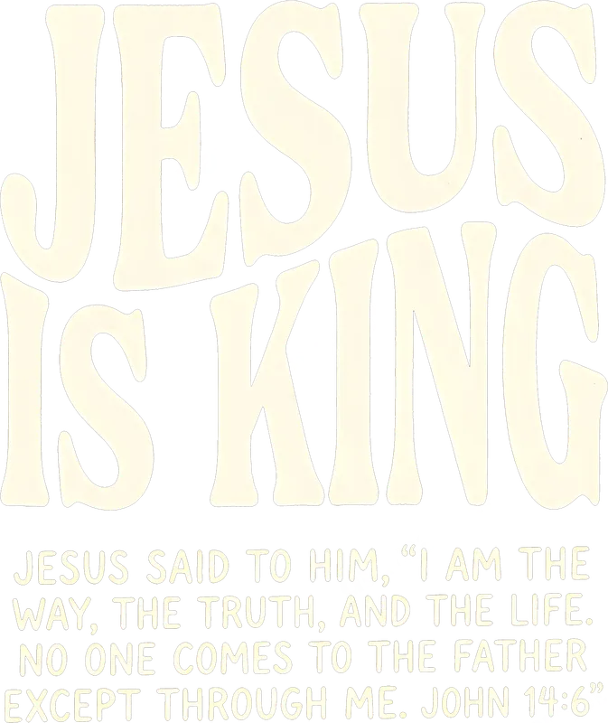 See allShowcase your devotion with our striking 'Jesus Is King' DTF transfer. This powerful design features the iconic phrase in a bold, retro-inspired wavy font, complemented by the profound scripture from John 14:6: 'I am the way, the truth, and the life. No one comes to the Father except through me.' This high-quality DTF transfer is ready to press, making it easy to create impactful Christian apparel. This inspirational heat press design is perfect for anyone looking to express their Christian faith in a stylish way. Ideal for church events, youth group apparel, Bible study groups, or simply as a daily reminder of your beliefs. It makes a thoughtful gift for friends, family, or fellow believers on birthdays, holidays, or any occasion celebrating faith. Create custom t-shirts, hoodies, or tote bags for evangelism or personal wear. Our direct to film transfers are incredibly versatile and can be applied to a wide range of materials, including cotton, polyester, and various fabric blends. For best results, use a heat press at 300-325°F for 15 seconds with medium pressure. It can also be applied with a household iron with careful technique. Enjoy the convenience of a ready to press transfer with no tedious weeding required, unlike traditional vinyl transfers. Experience superior quality with our durable heat transfer. Each shirt design boasts vibrant colors, excellent wash durability, and resistance to cracking or peeling. The special DTF film ensures a soft hand feel on your garment, blending seamlessly with the fabric. With strong adhesive properties, this apparel transfer provides a long-lasting, professional finish, giving your custom creations a premium look and feel.