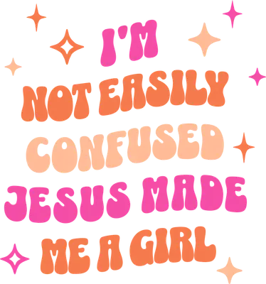 Dive into the playful yet powerful statement of this "I'M NOT EASILY CONFUSED JESUS MADE ME A GIRL" DTF transfer. Featuring bold, retro-inspired bubbly typography in cheerful shades of pink, hot pink, orange, and peach, accented with sparkling stars, this design exudes confidence and feminine faith. It's a vibrant and spirited statement piece, ready to press onto your favorite garments to make a declaration of self-assured identity. This sassy and sweet design is perfect for Christian women and girls who embrace their faith with a touch of humor and confidence. It makes an excellent iron on transfer for youth group events, church gatherings, or simply for everyday wear that expresses your unique spirit. Small business owners, crafters, and Etsy sellers looking for popular, uplifting heat transfer designs for their apparel lines will find this a fantastic addition to their offerings, appealing to a broad audience looking for faith-based self-expression or a thoughtful gift. Applying this heat press transfer is incredibly easy, making it accessible for both experienced crafters and beginners. It adheres beautifully to a wide range of materials including cotton, polyester, cotton-poly blends, and even nylon. For best results, use a heat press at 300-325°F for 15 seconds with medium pressure, or apply with a household iron following similar temperature guidelines. There's no tedious weeding required—simply peel and press for professional-looking custom t-shirts, hoodies, sweatshirts, tote bags, or even denim jackets. For lasting durability, wash garments inside out and tumble dry on low. Experience superior quality with this ready to press transfer, showcasing vibrant, full-color printing and exceptional fine detail. The design is crack-resistant and boasts a soft, lightweight feel, avoiding the heavy, stiff sensation often associated with traditional vinyl transfers. Each direct to film transfer is meticulously printed on premium DTF film, featuring a strong adhesive backing to ensure professional, long-lasting results that hold up wash after wash.