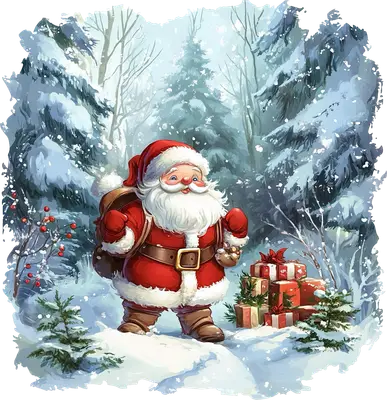 Jolly Santa Claus in Snowy Forest DTF Transfer for Christmas Apparel