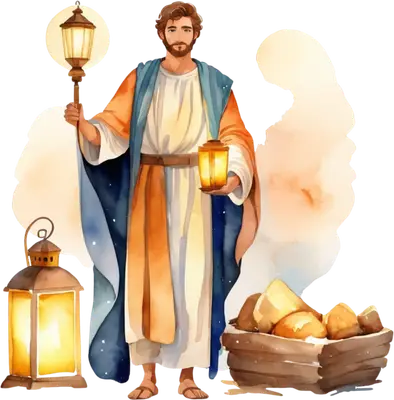 Joseph with Lanterns Nativity Scene DTF Transfer