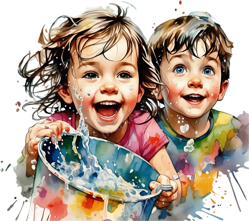 Joyful Kids Water Splash Watercolor DTF Transfer
