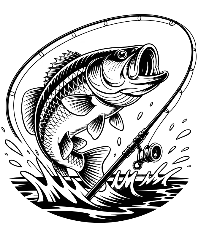 Jumping Bass Fishing DTF Transfer | Largemouth Fish Rod & Reel Design