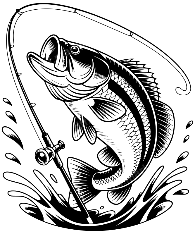 Jumping Bass Fishing DTF Transfer | Ready to Press Angler Design