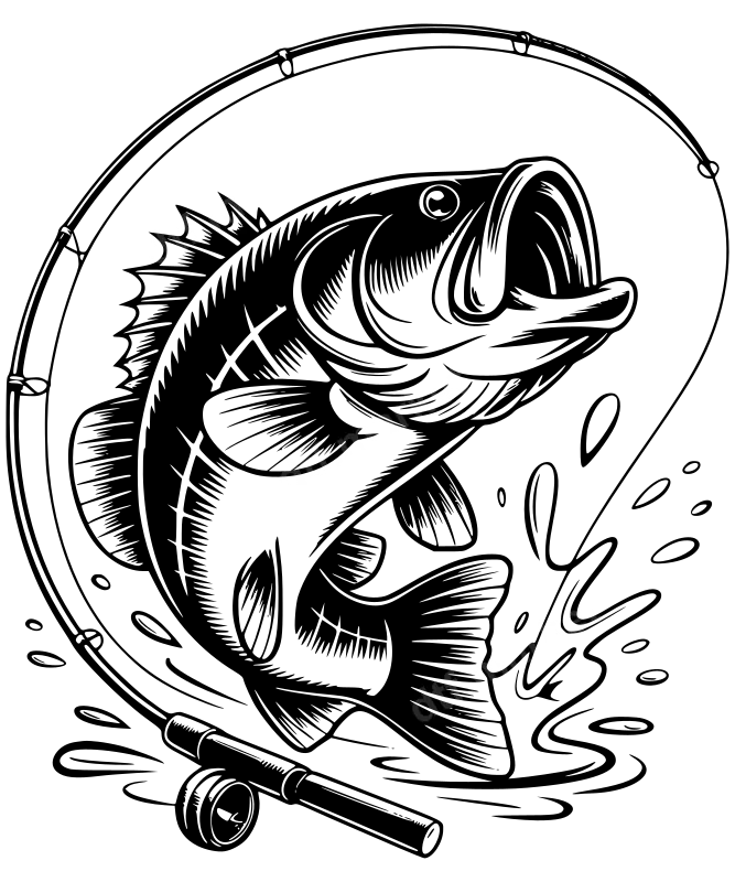 Jumping Bass Fishing DTF Transfer | Ready to Press Fish Design